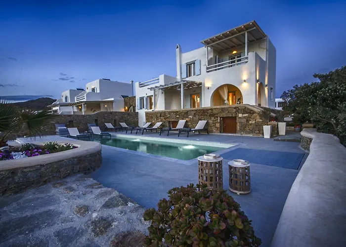 La villa sorge a 10 minuti d'auto dall'aeroporto di Mykonos. In loco si trovano una terrazza solarium e una terrazza prendisole.